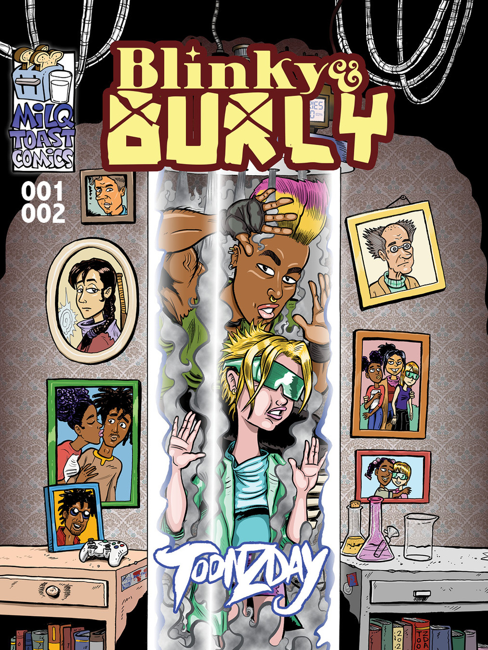 "Family Matters" is a 5 chapter arc that reintroduces Armstrong & Blindside, along with the twisted family they grew up with. These two sisters will confront their family trauma all while ducking and dodging deadly henchmen and explosions, all under the light of a glowing Saturn. Featuring old and new characters, Blinky & Burly is a funny, sci-fi romp that confirms what we suspected all along: every family is f*@!ked up in their own way.